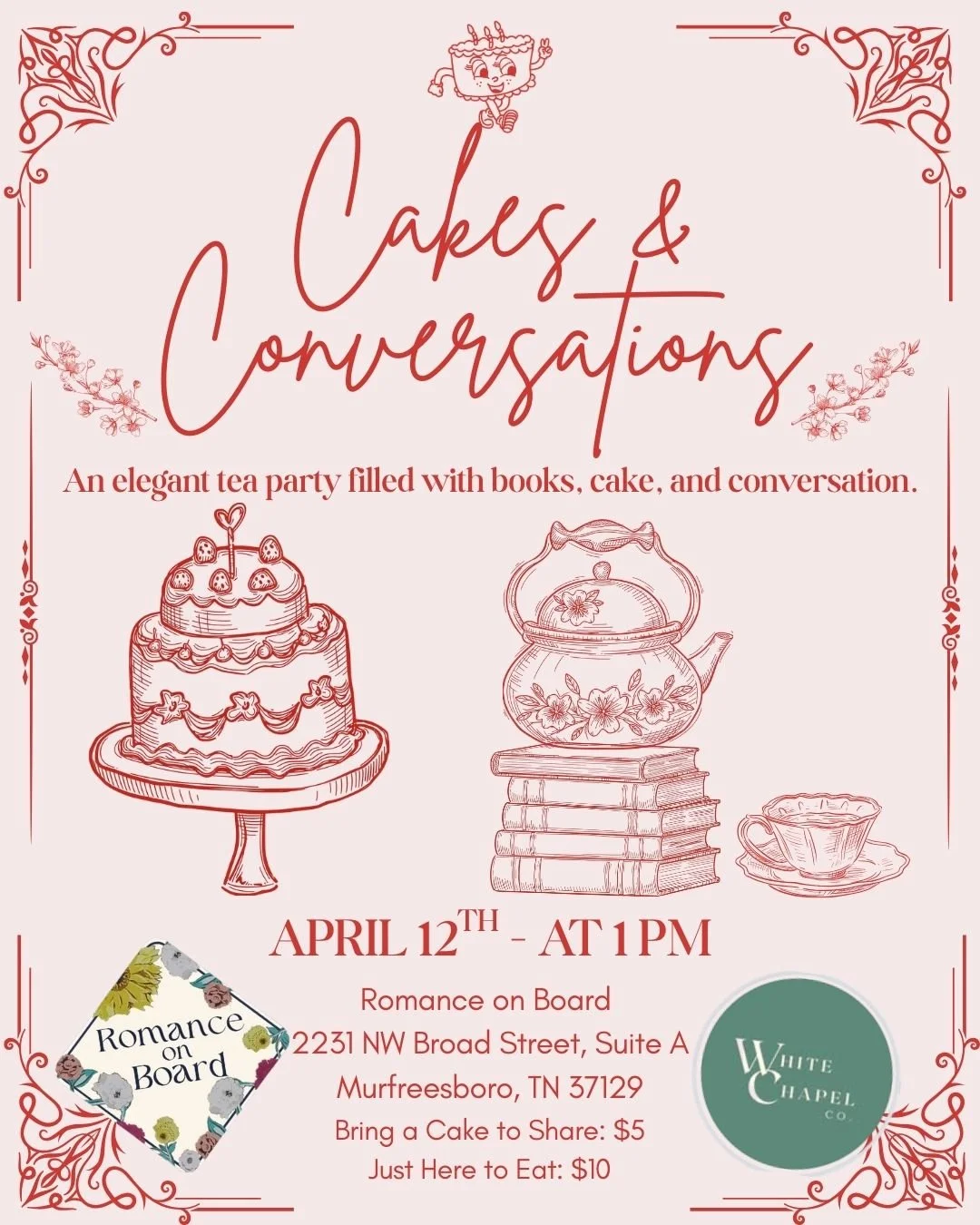 Hosted in partnership with Romance on Board, this special gathering brings together cake lovers, readers, and friends for an afternoon filled with delicious desserts and delightful conversation.