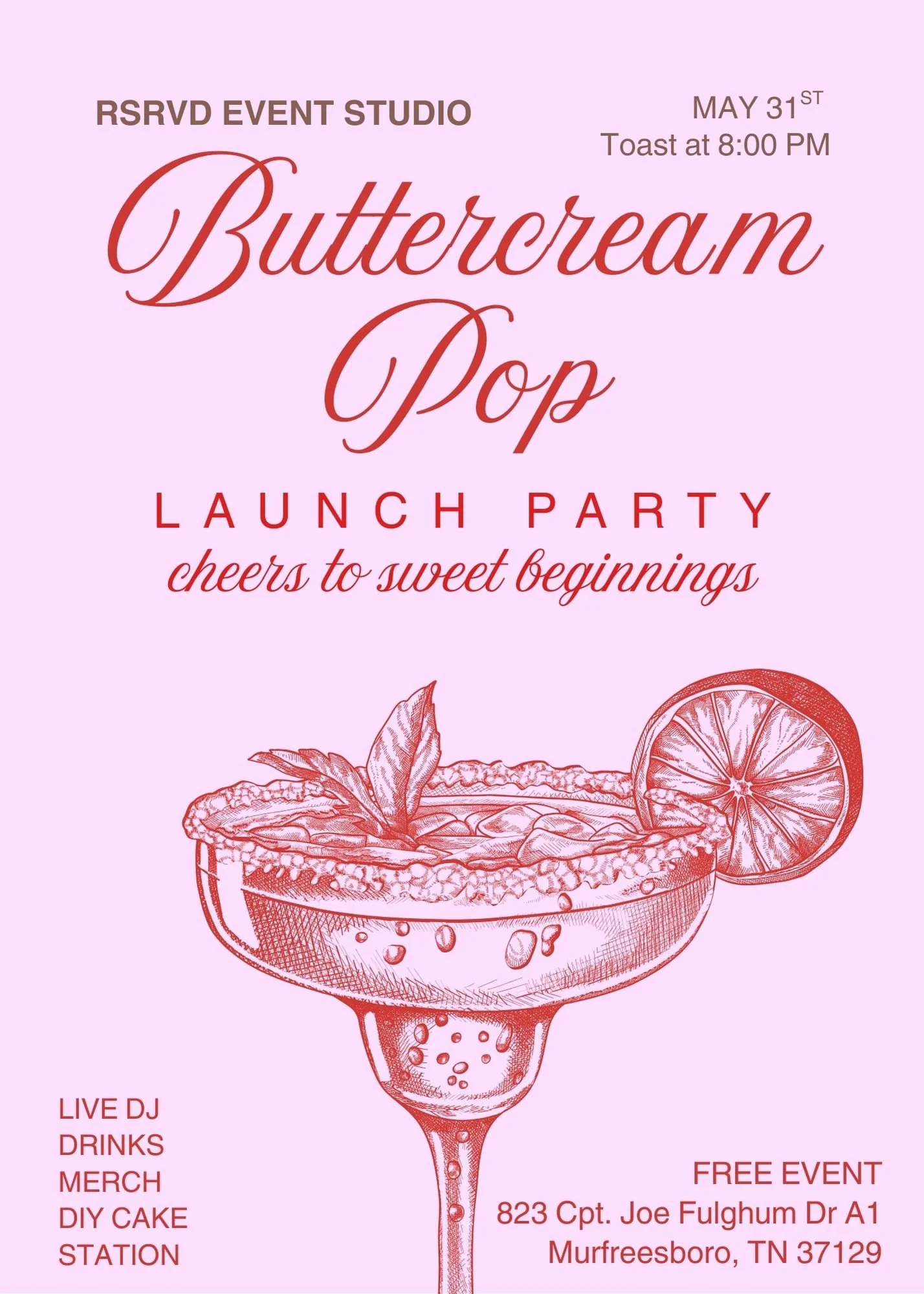 Join us for the official Buttercream Pop launch party — a night of sugar, sparkle, and celebration!
